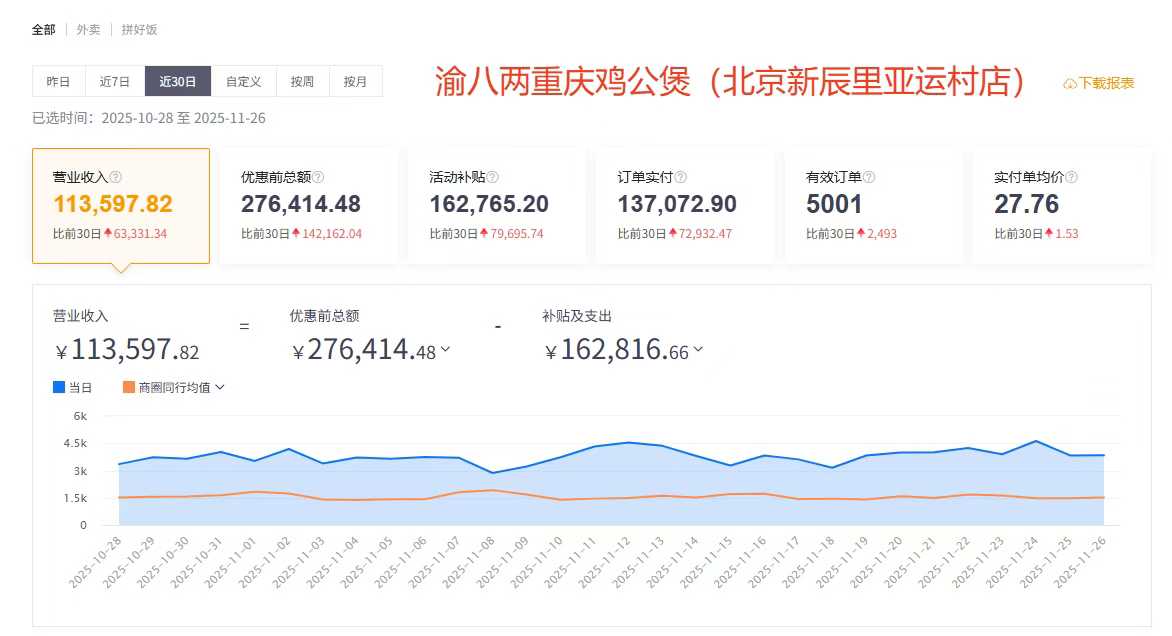 渝八两北京亚运村店开业首月,美团单平台实收5000单!
